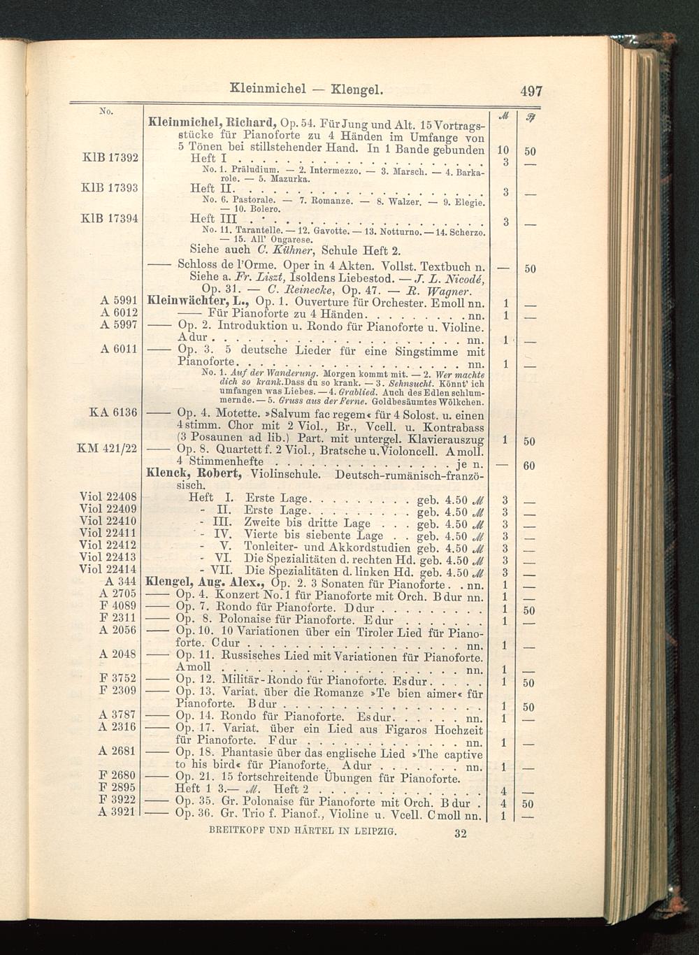 Verzeichnis des Musikalien-Verlages von Breitkopf & Härtel in Leipzig vollständig bis 1902