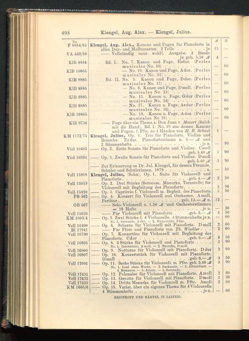 Verzeichnis des Musikalien-Verlages von Breitkopf & Härtel in Leipzig vollständig bis 1902