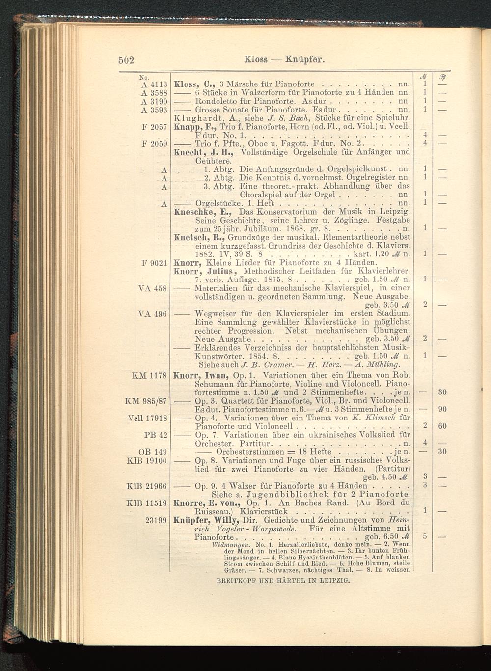 Verzeichnis des Musikalien-Verlages von Breitkopf & Härtel in Leipzig vollständig bis 1902