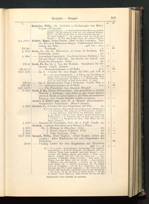 Verzeichnis des Musikalien-Verlages von Breitkopf & Härtel in Leipzig vollständig bis 1902