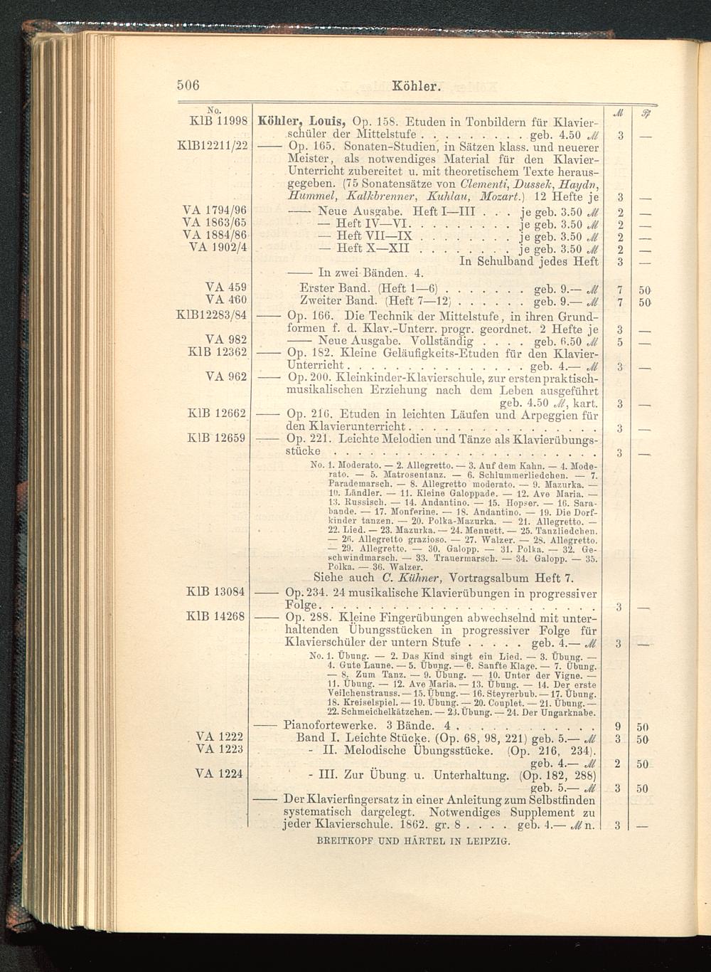 Verzeichnis des Musikalien-Verlages von Breitkopf & Härtel in Leipzig vollständig bis 1902