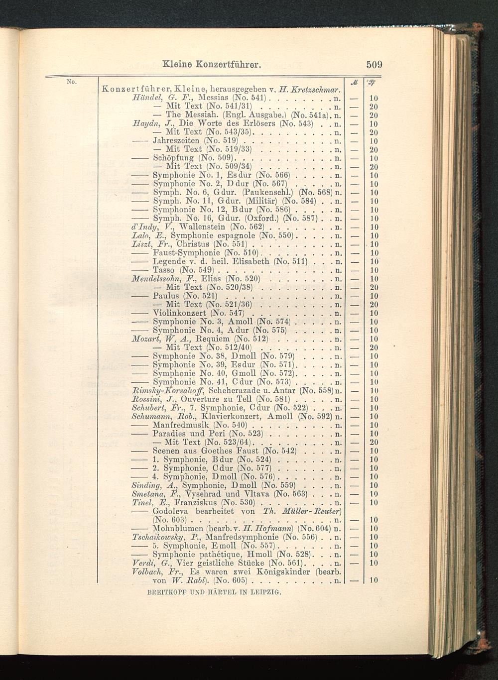Verzeichnis des Musikalien-Verlages von Breitkopf & Härtel in Leipzig vollständig bis 1902