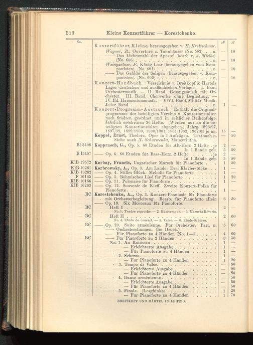 Verzeichnis des Musikalien-Verlages von Breitkopf & Härtel in Leipzig vollständig bis 1902