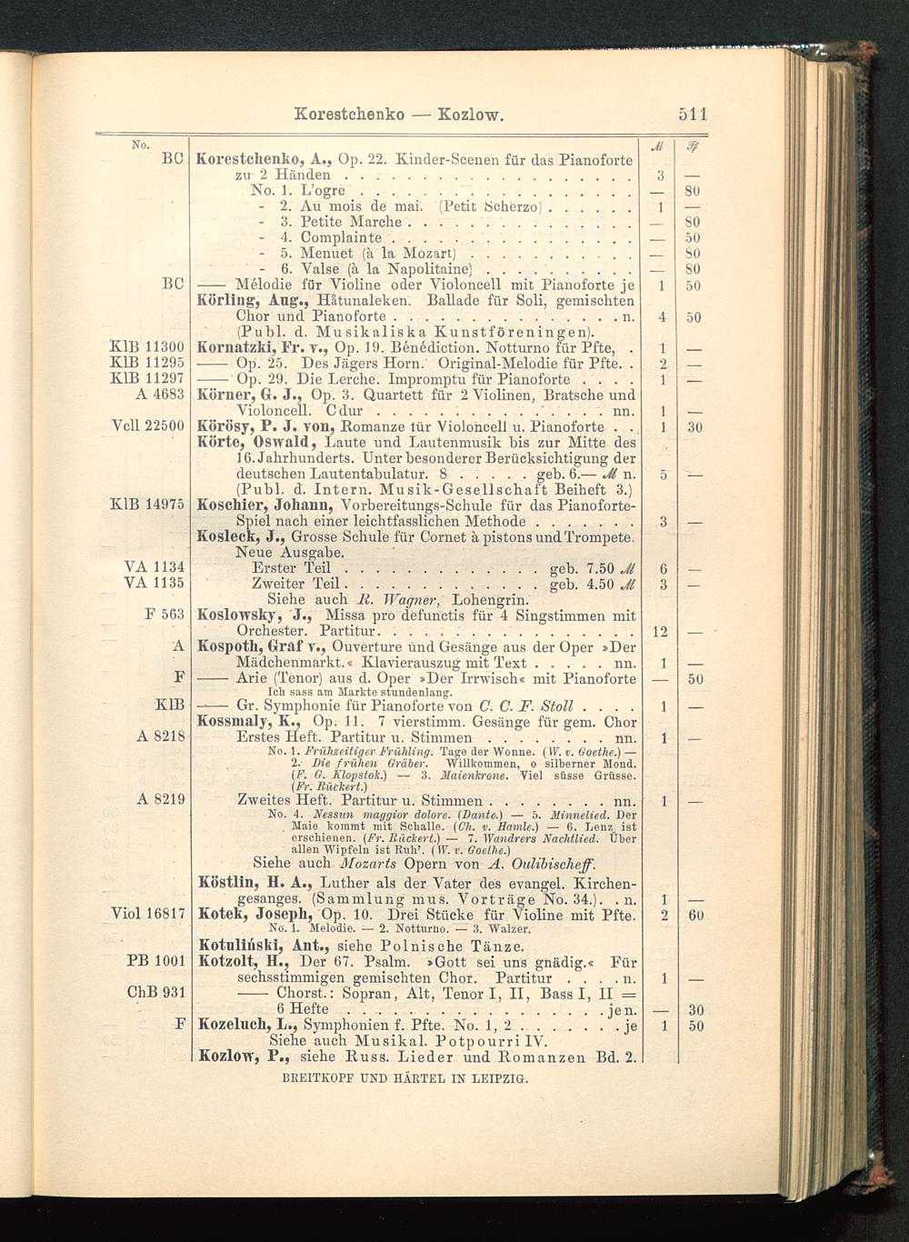 Verzeichnis des Musikalien-Verlages von Breitkopf & Härtel in Leipzig vollständig bis 1902