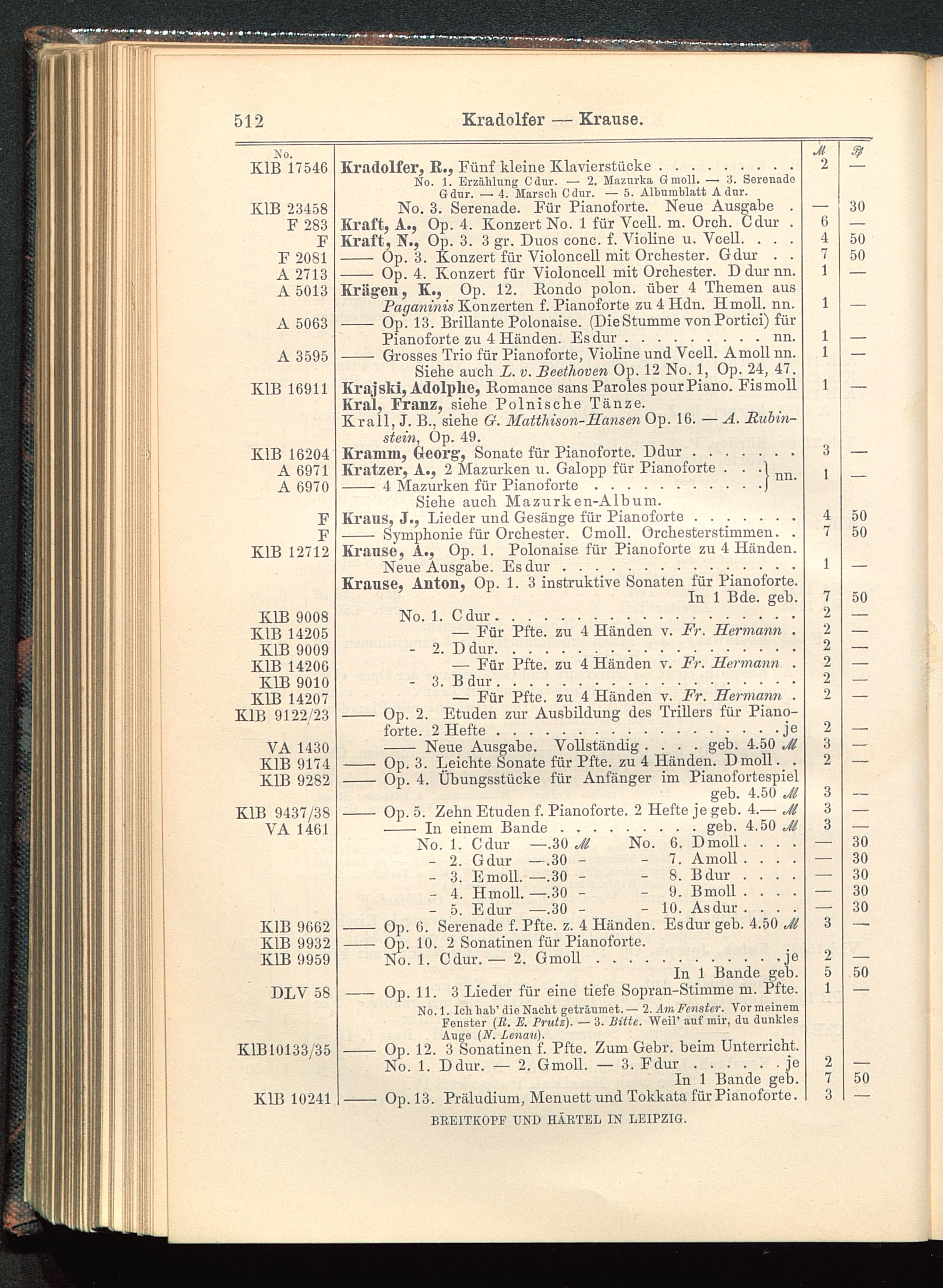 Verzeichnis des Musikalien-Verlages von Breitkopf & Härtel in Leipzig vollständig bis 1902