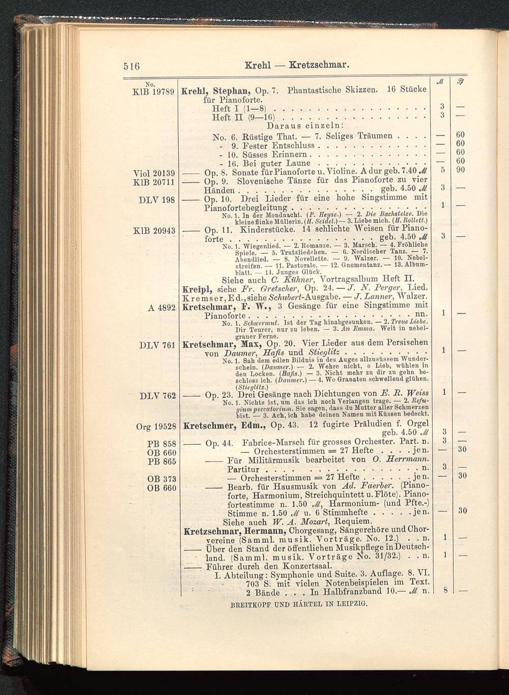 Verzeichnis des Musikalien-Verlages von Breitkopf & Härtel in Leipzig vollständig bis 1902