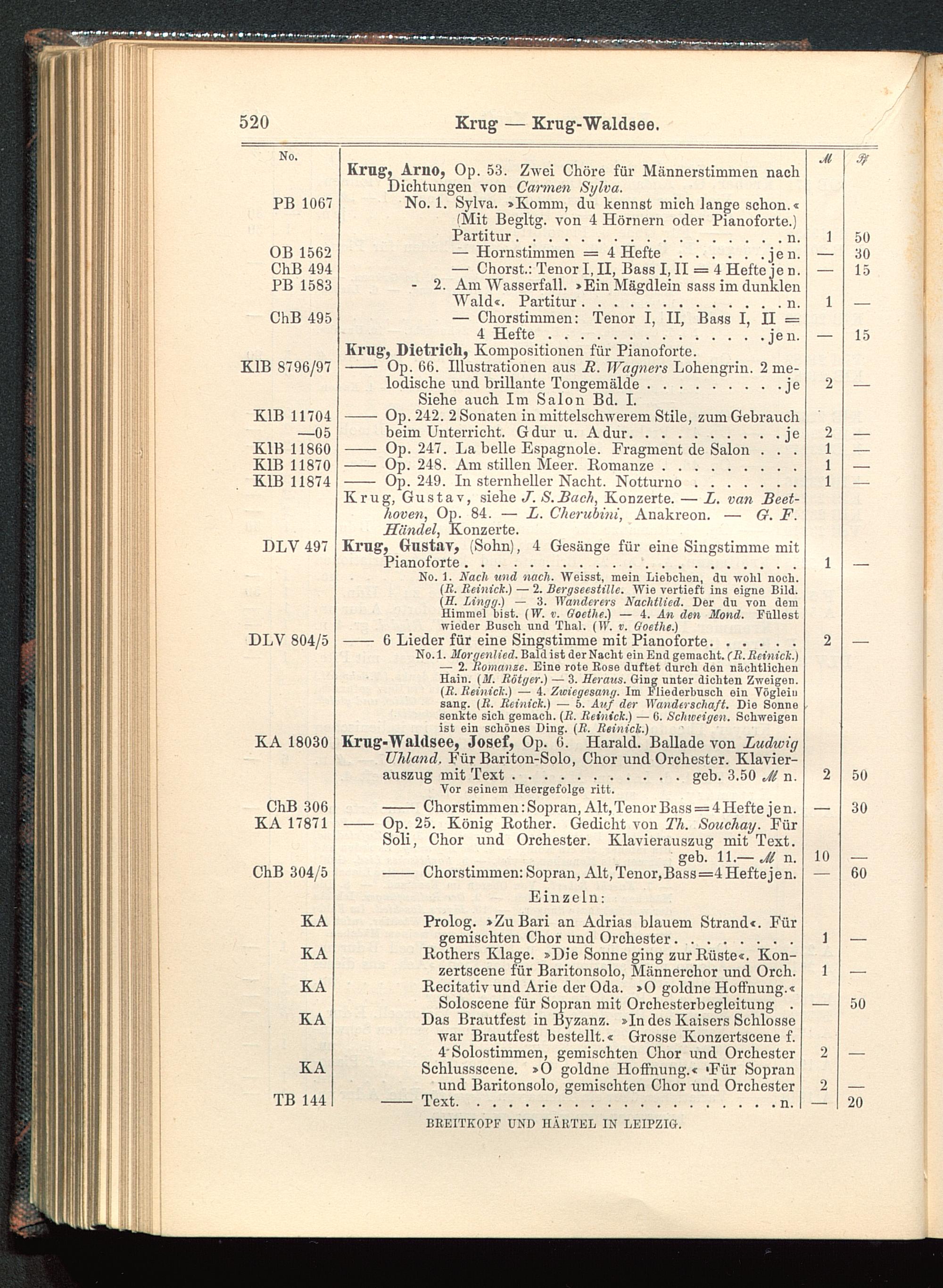 Verzeichnis des Musikalien-Verlages von Breitkopf & Härtel in Leipzig vollständig bis 1902