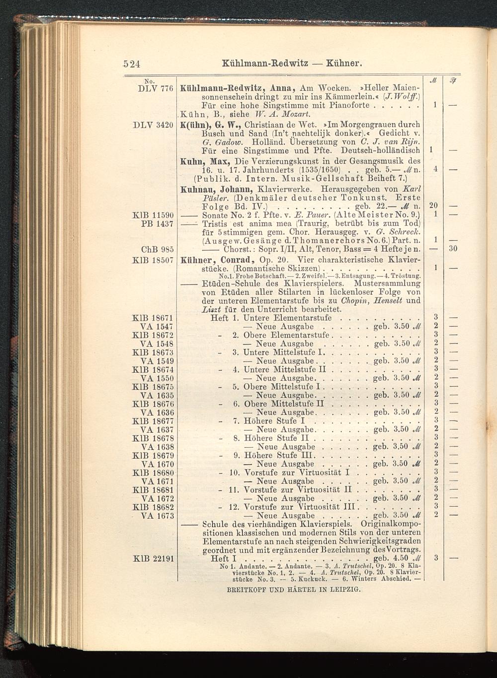 Verzeichnis des Musikalien-Verlages von Breitkopf & Härtel in Leipzig vollständig bis 1902
