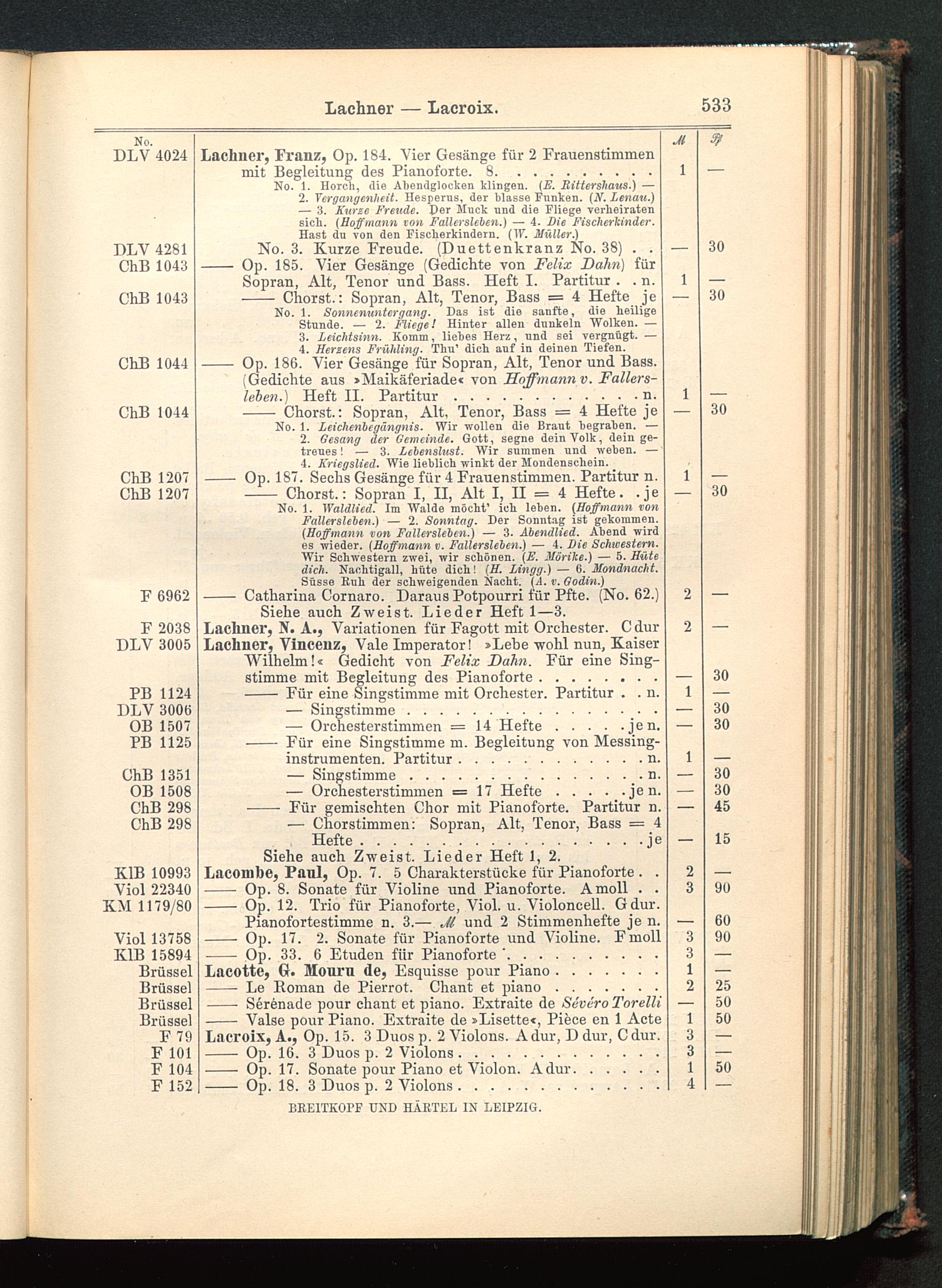 Verzeichnis des Musikalien-Verlages von Breitkopf & Härtel in Leipzig vollständig bis 1902