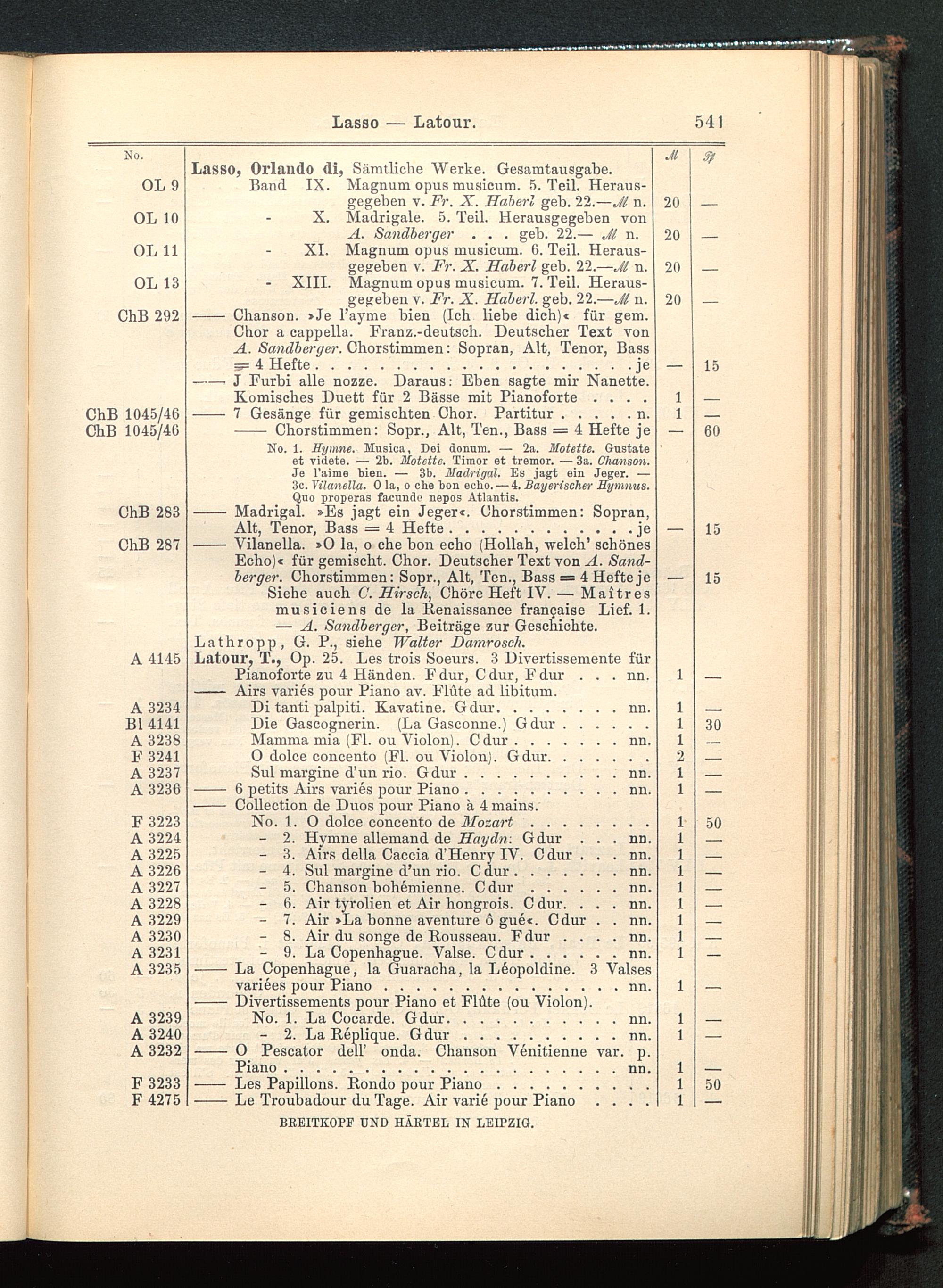 Verzeichnis des Musikalien-Verlages von Breitkopf & Härtel in Leipzig vollständig bis 1902