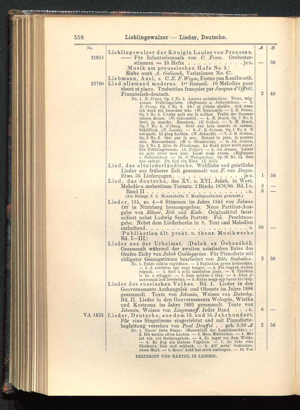 Verzeichnis des Musikalien-Verlages von Breitkopf & Härtel in Leipzig vollständig bis 1902