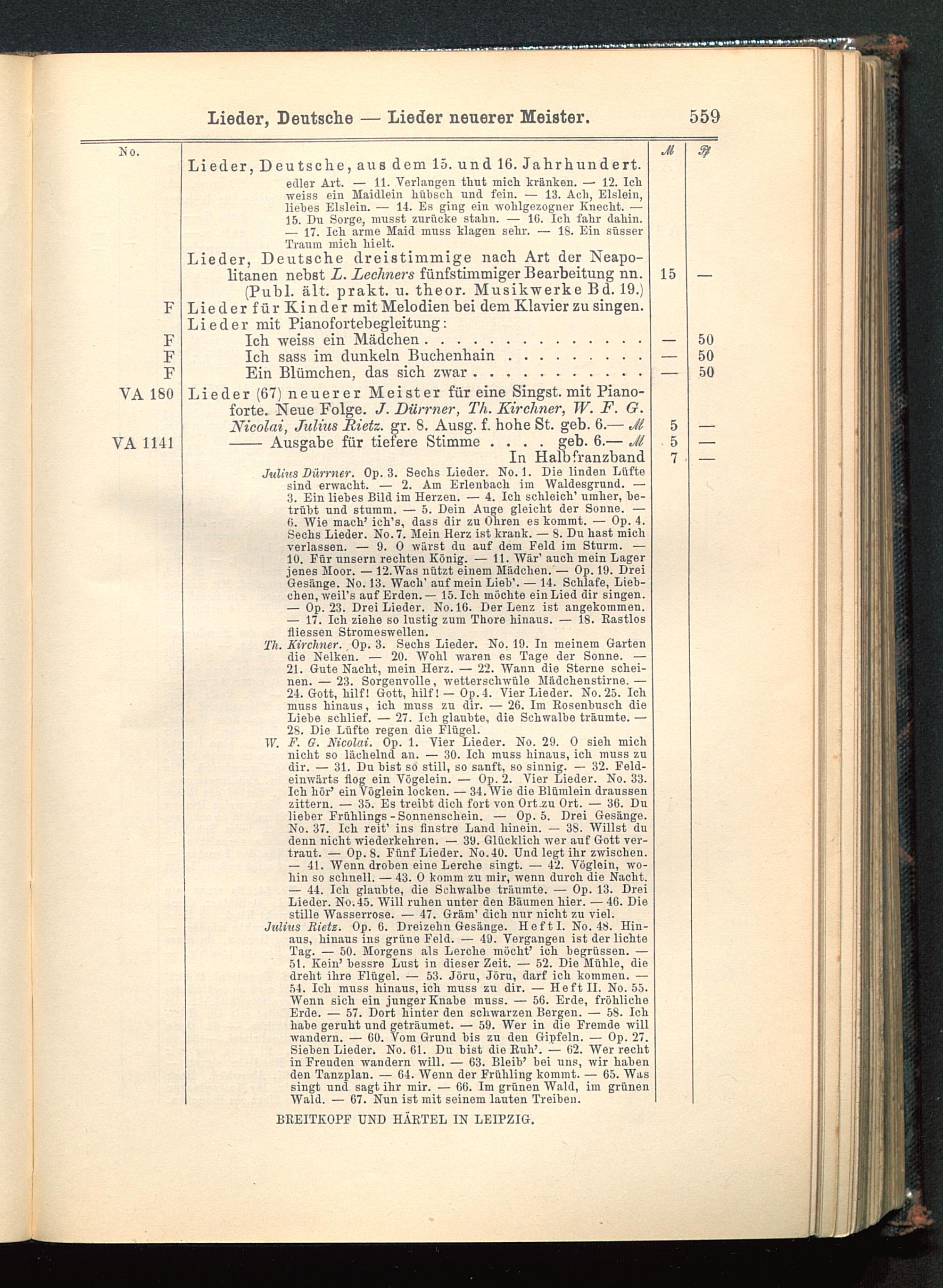 Verzeichnis des Musikalien-Verlages von Breitkopf & Härtel in Leipzig vollständig bis 1902