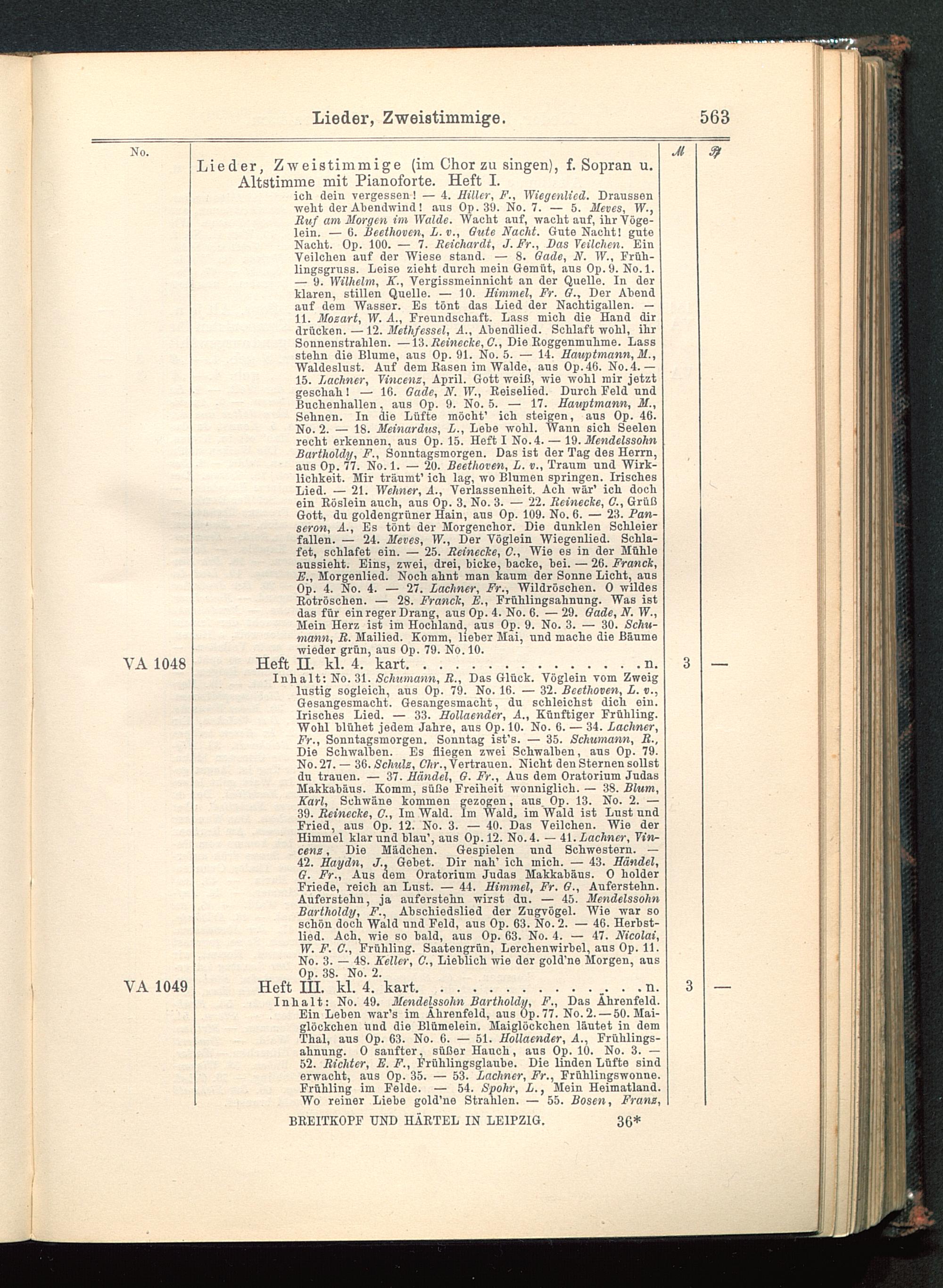 Verzeichnis des Musikalien-Verlages von Breitkopf & Härtel in Leipzig vollständig bis 1902