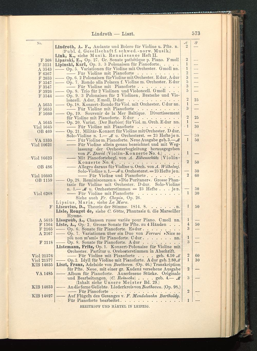 Verzeichnis des Musikalien-Verlages von Breitkopf & Härtel in Leipzig vollständig bis 1902