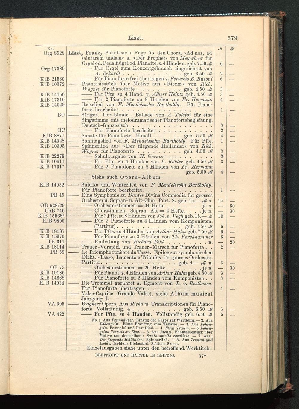 Verzeichnis des Musikalien-Verlages von Breitkopf & Härtel in Leipzig vollständig bis 1902