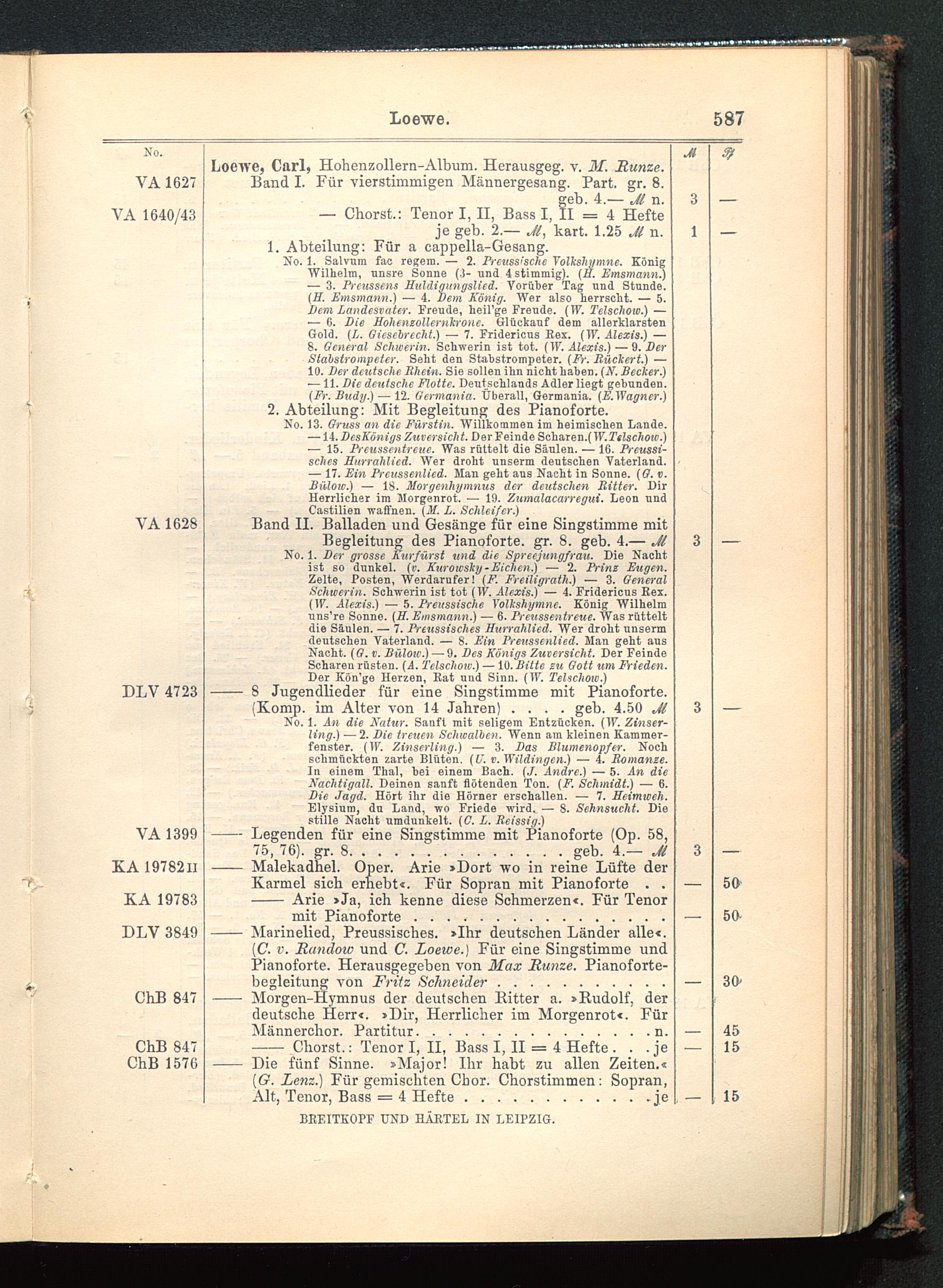 Verzeichnis des Musikalien-Verlages von Breitkopf & Härtel in Leipzig vollständig bis 1902