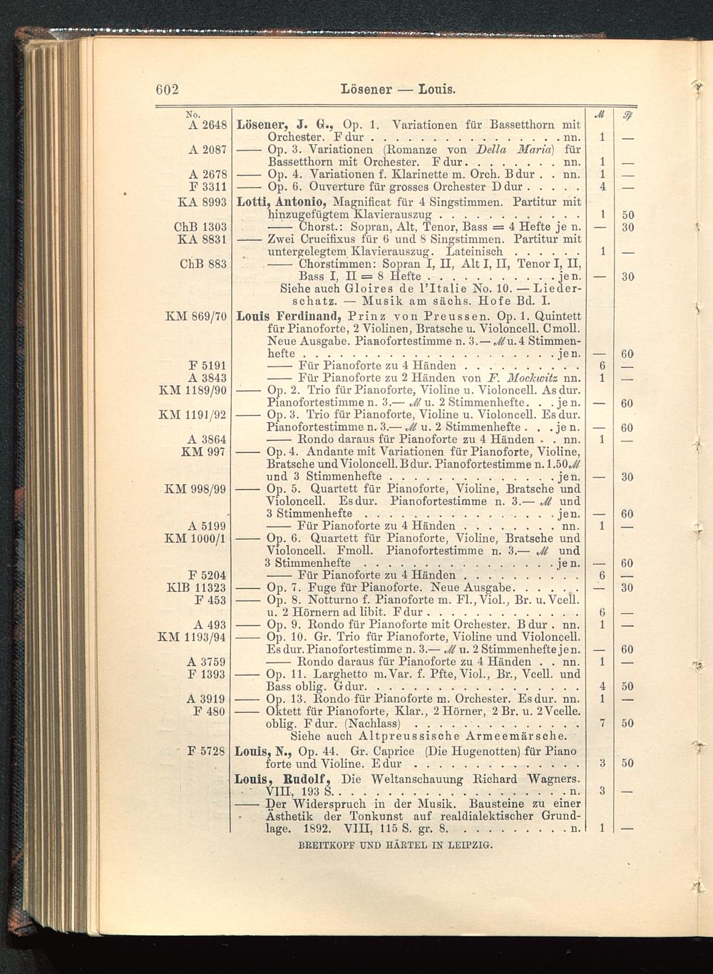 Verzeichnis des Musikalien-Verlages von Breitkopf & Härtel in Leipzig vollständig bis 1902