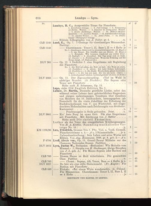 Verzeichnis des Musikalien-Verlages von Breitkopf & Härtel in Leipzig vollständig bis 1902