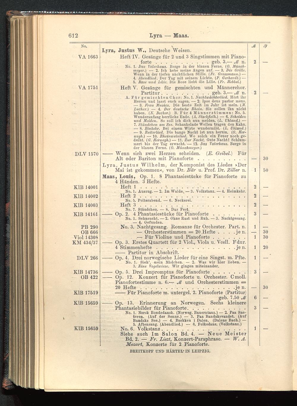 Verzeichnis des Musikalien-Verlages von Breitkopf & Härtel in Leipzig vollständig bis 1902