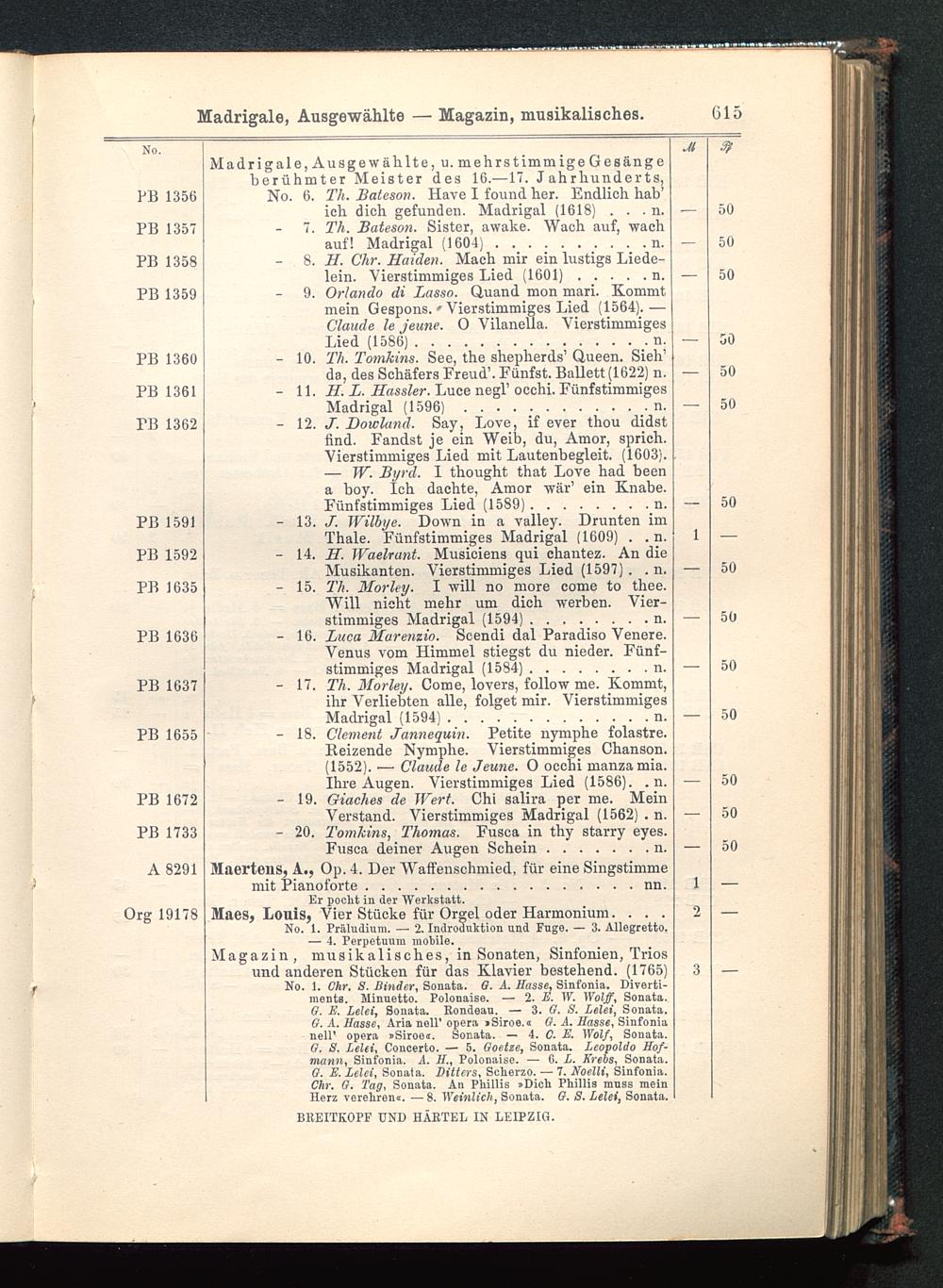 Verzeichnis des Musikalien-Verlages von Breitkopf & Härtel in Leipzig vollständig bis 1902