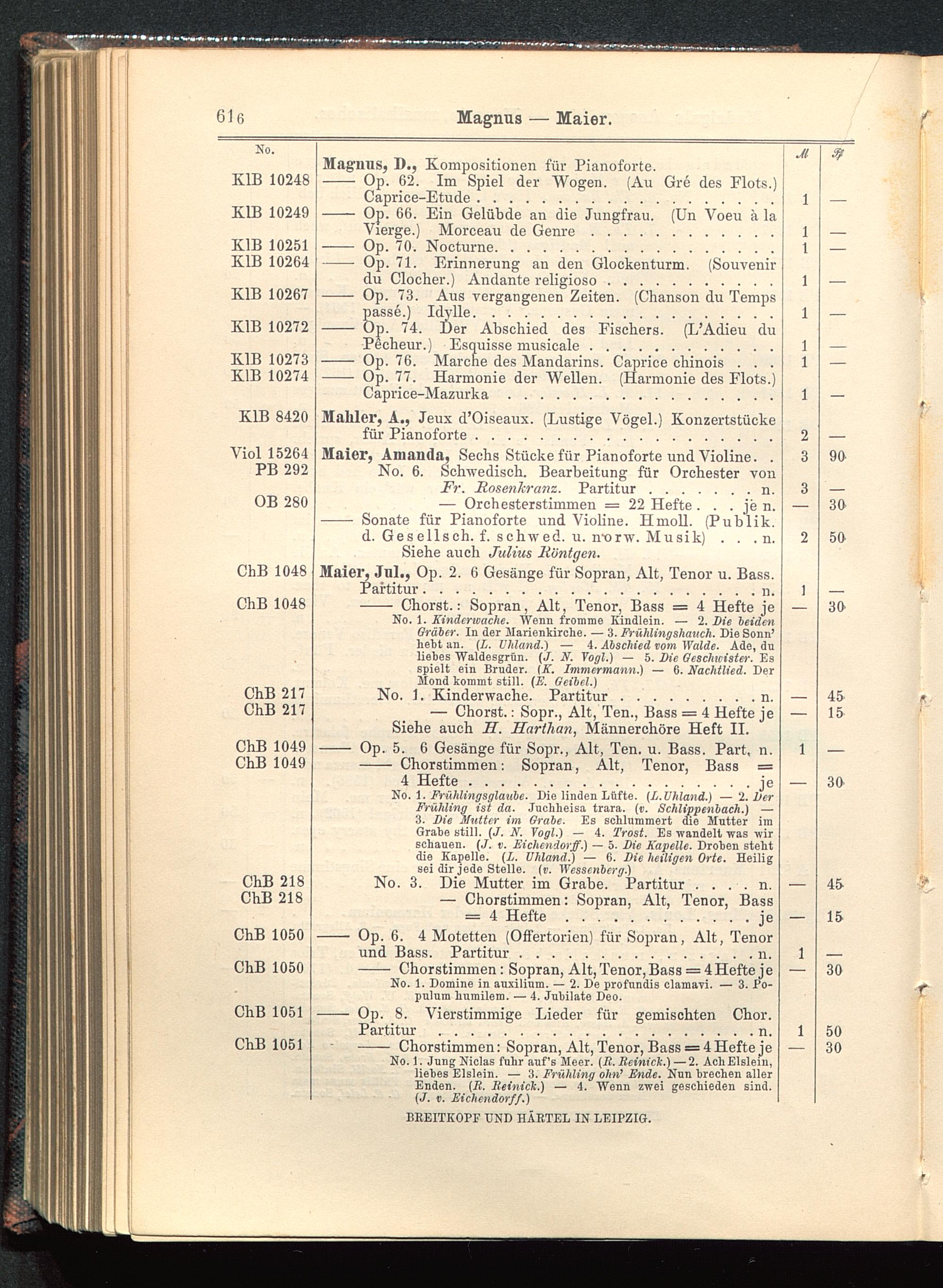 Verzeichnis des Musikalien-Verlages von Breitkopf & Härtel in Leipzig vollständig bis 1902