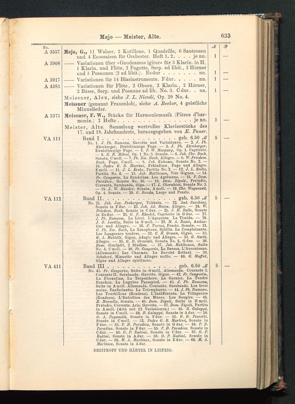 Verzeichnis des Musikalien-Verlages von Breitkopf & Härtel in Leipzig vollständig bis 1902