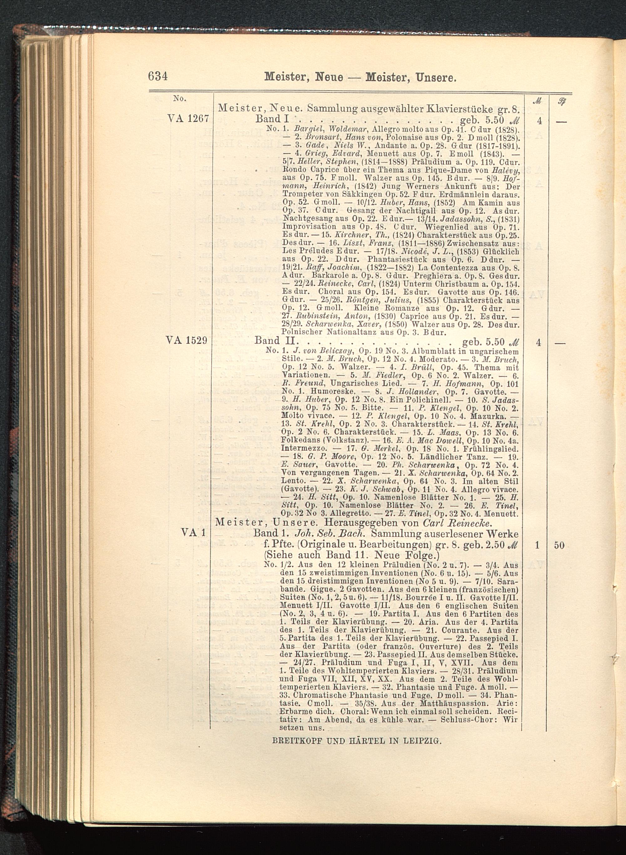 Verzeichnis des Musikalien-Verlages von Breitkopf & Härtel in Leipzig vollständig bis 1902