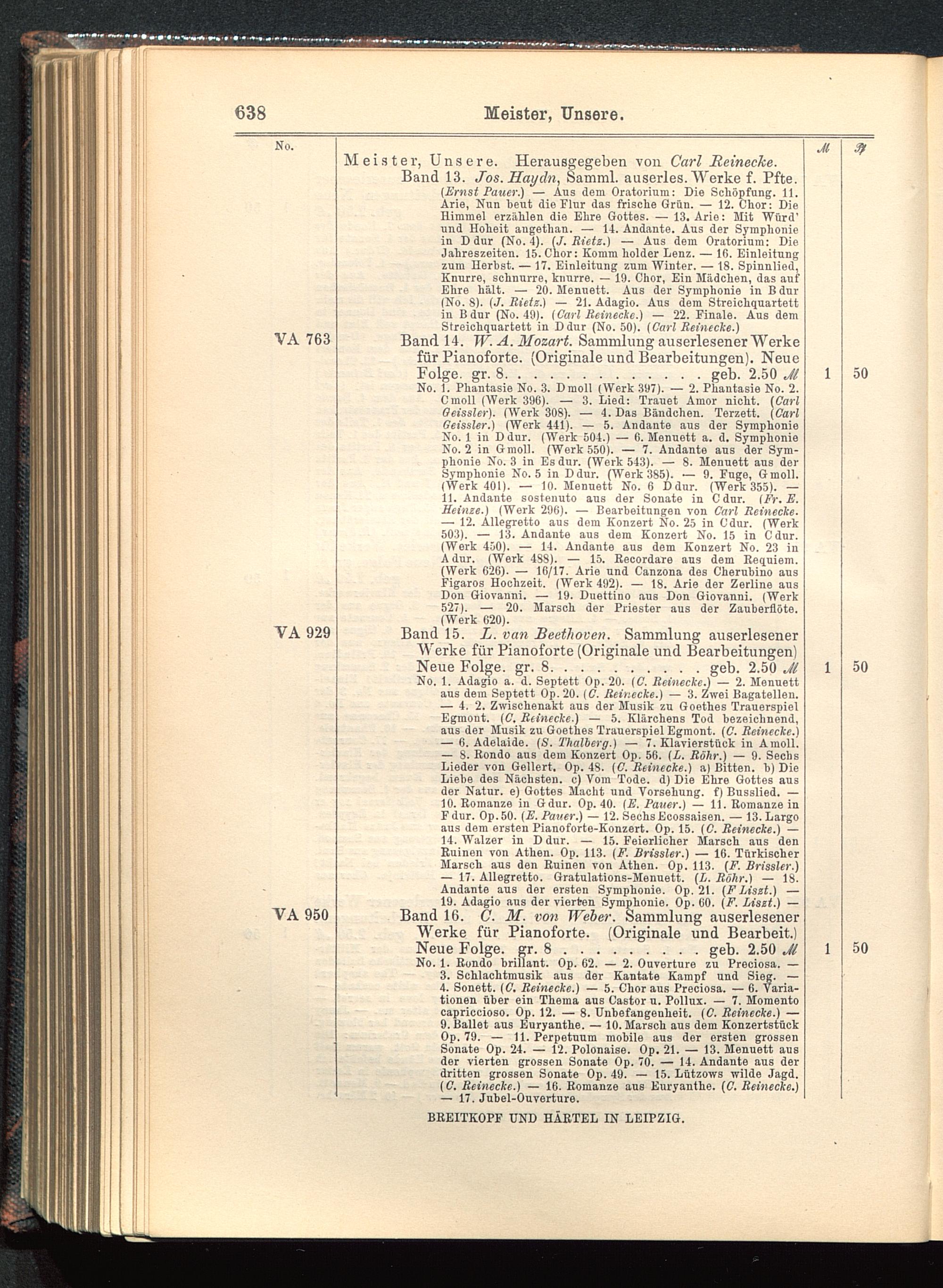 Verzeichnis des Musikalien-Verlages von Breitkopf & Härtel in Leipzig vollständig bis 1902