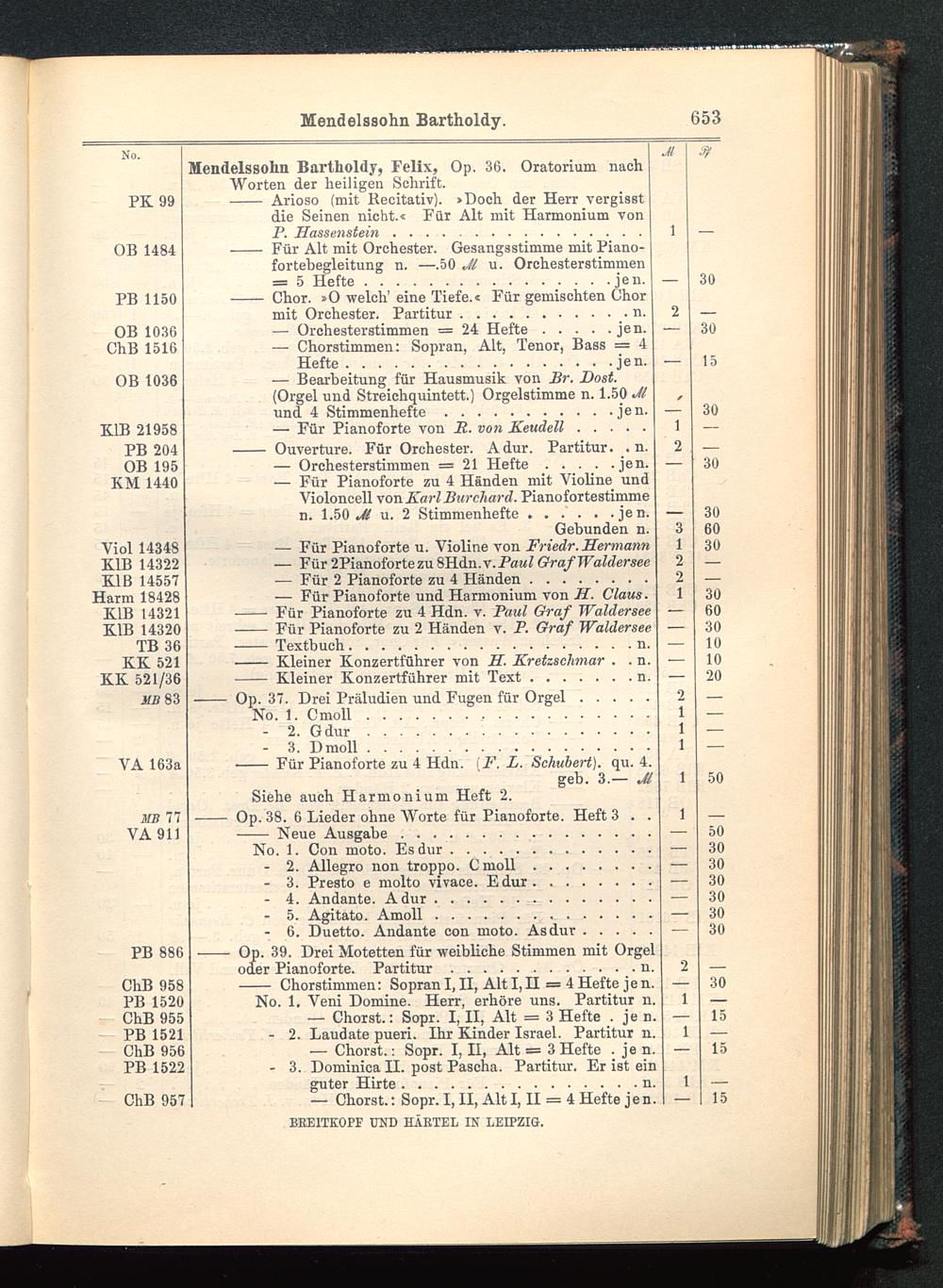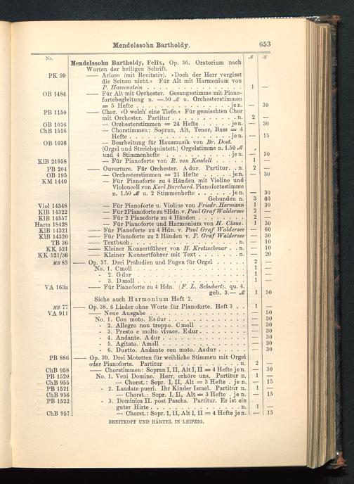Verzeichnis des Musikalien-Verlages von Breitkopf & Härtel in Leipzig vollständig bis 1902