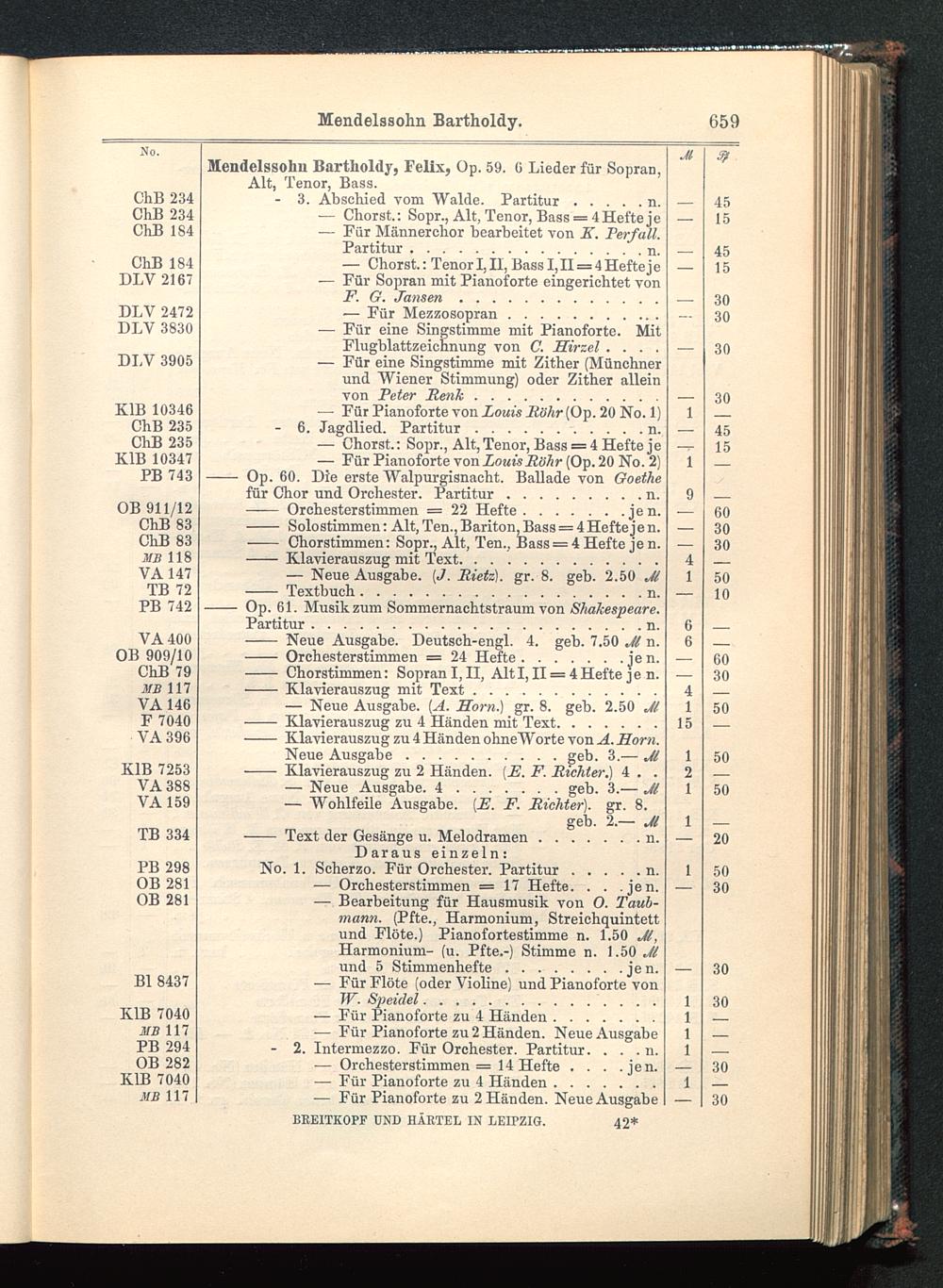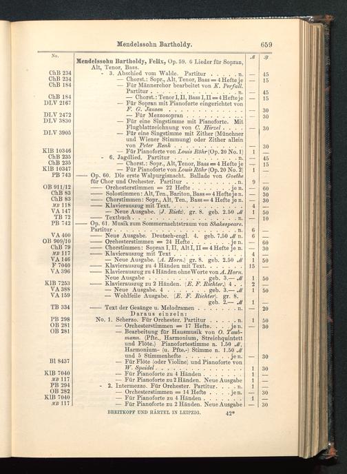 Verzeichnis des Musikalien-Verlages von Breitkopf & Härtel in Leipzig vollständig bis 1902