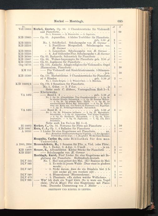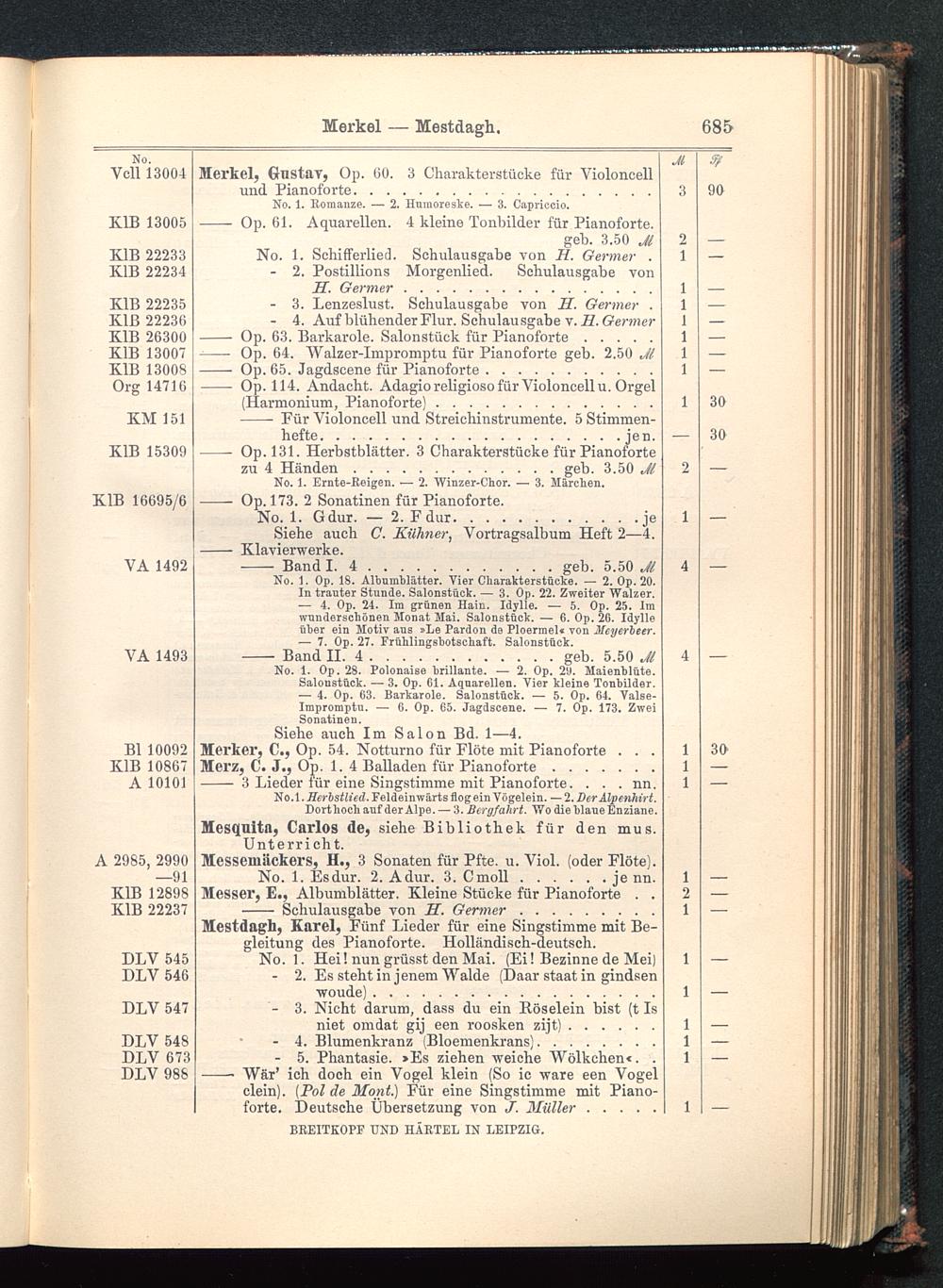 Verzeichnis des Musikalien-Verlages von Breitkopf & Härtel in Leipzig vollständig bis 1902