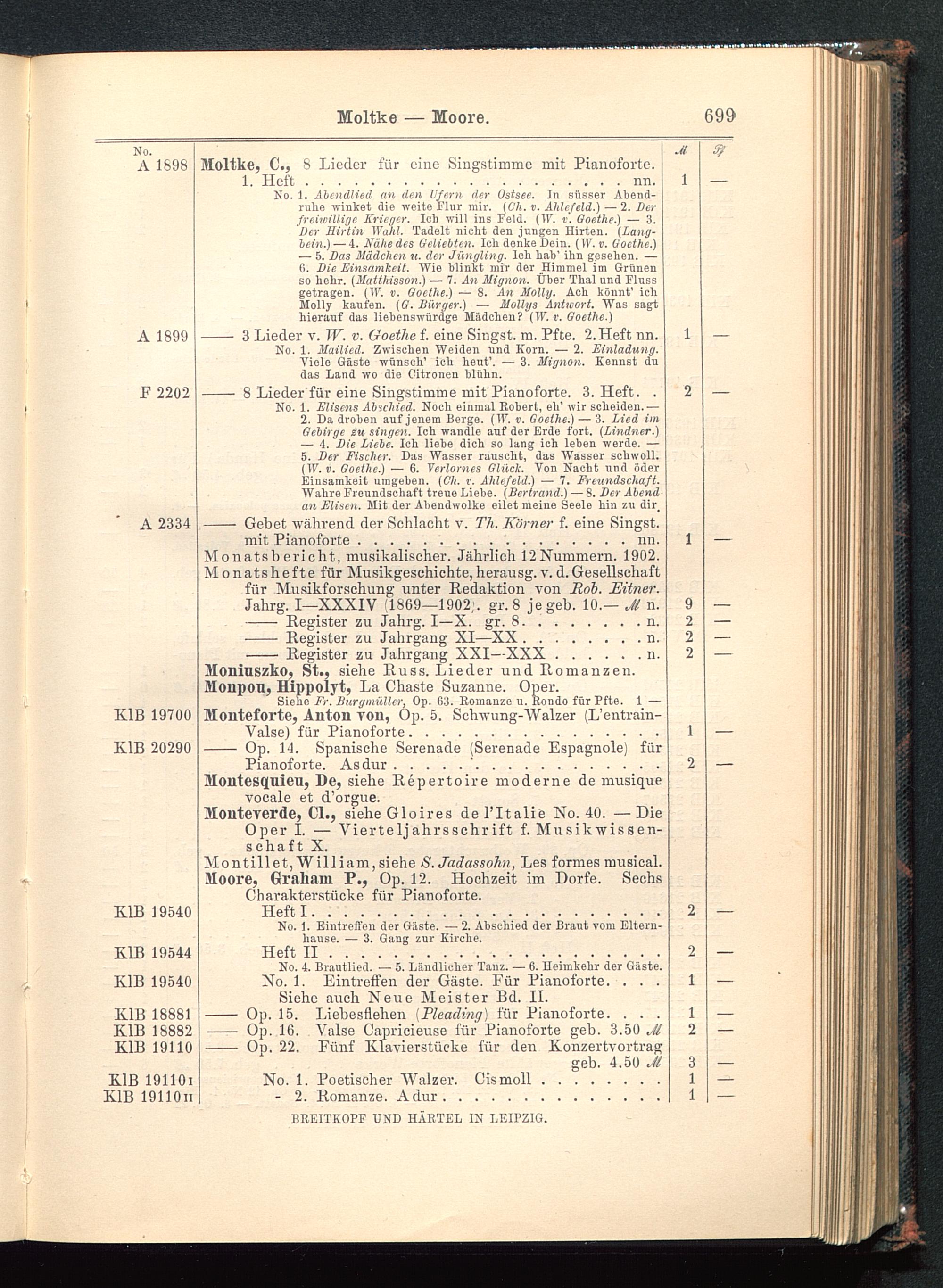 Verzeichnis des Musikalien-Verlages von Breitkopf & Härtel in Leipzig vollständig bis 1902