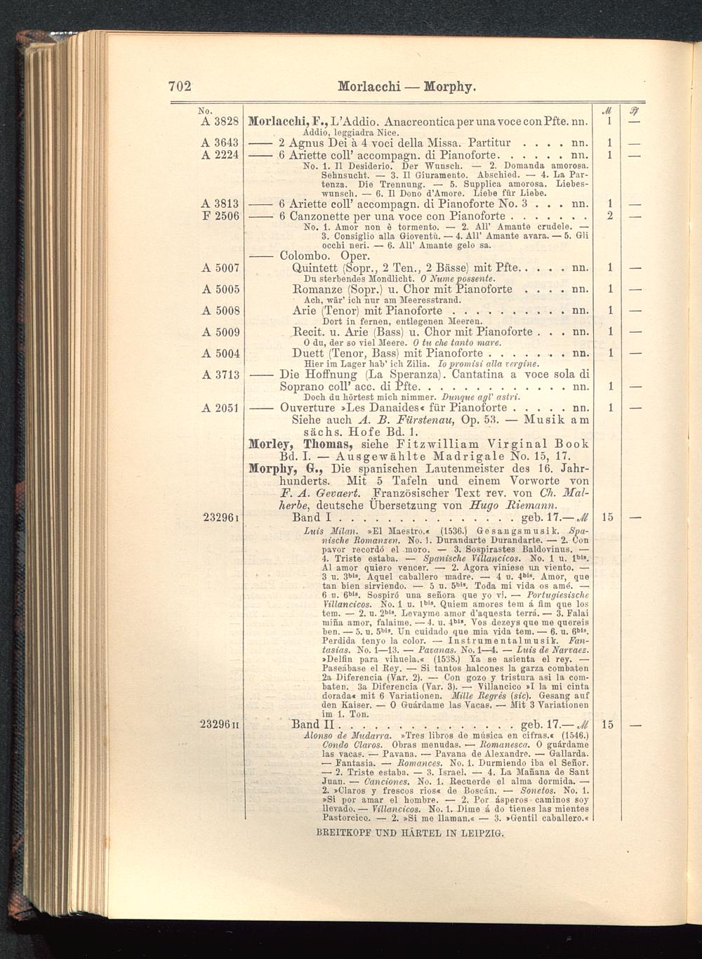 Verzeichnis des Musikalien-Verlages von Breitkopf & Härtel in Leipzig vollständig bis 1902