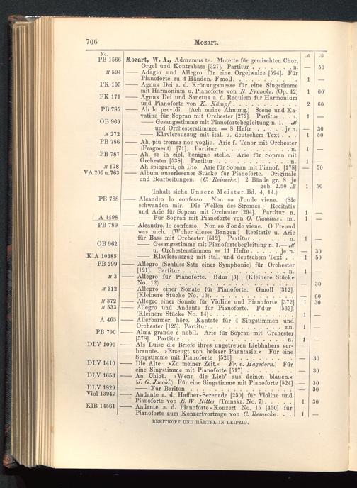 Verzeichnis des Musikalien-Verlages von Breitkopf & Härtel in Leipzig vollständig bis 1902