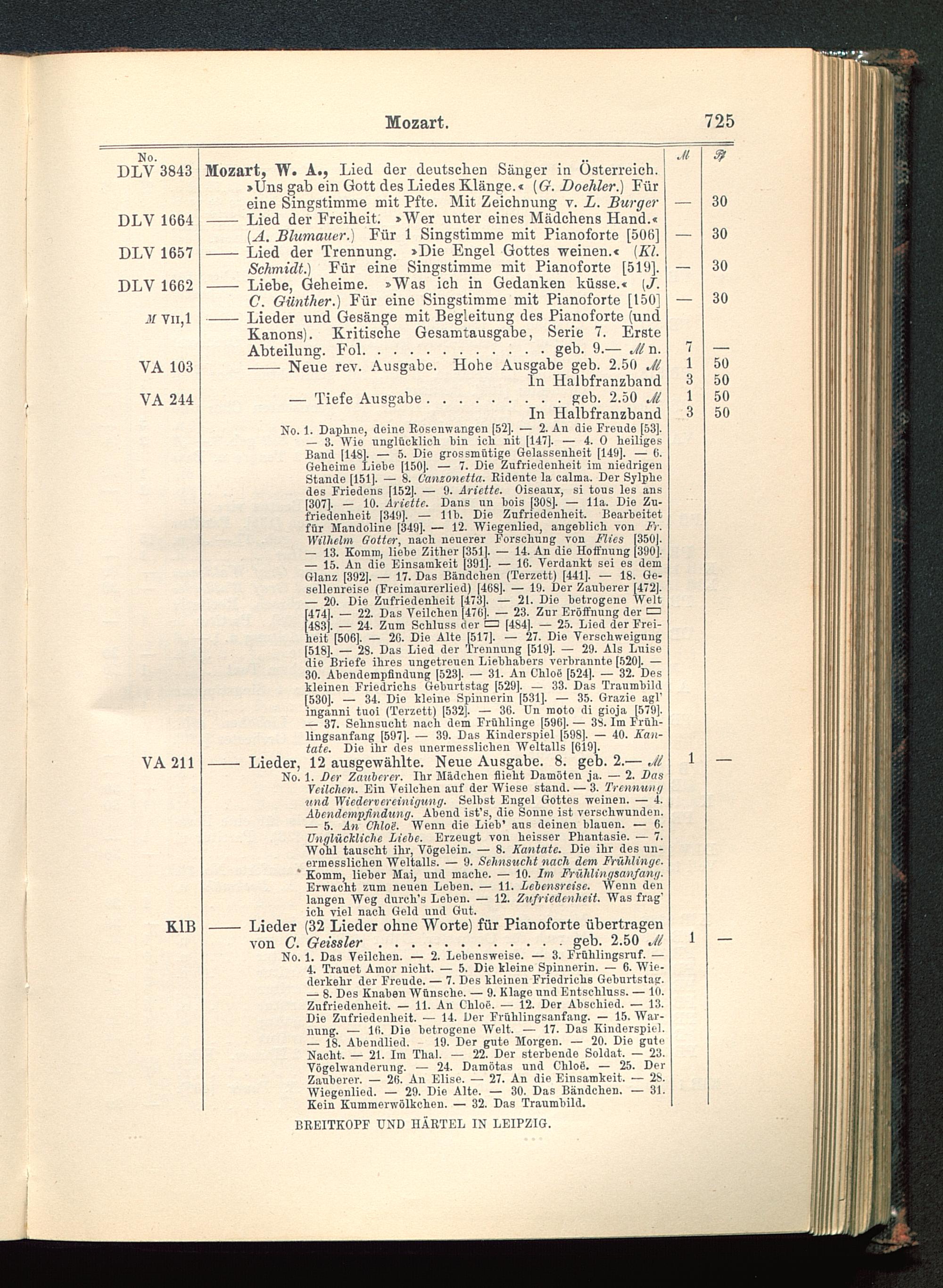 Verzeichnis des Musikalien-Verlages von Breitkopf & Härtel in Leipzig vollständig bis 1902