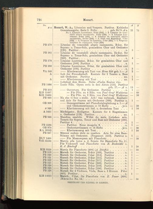 Verzeichnis des Musikalien-Verlages von Breitkopf & Härtel in Leipzig vollständig bis 1902
