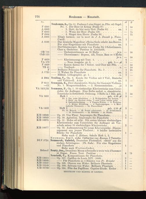 Verzeichnis des Musikalien-Verlages von Breitkopf & Härtel in Leipzig vollständig bis 1902