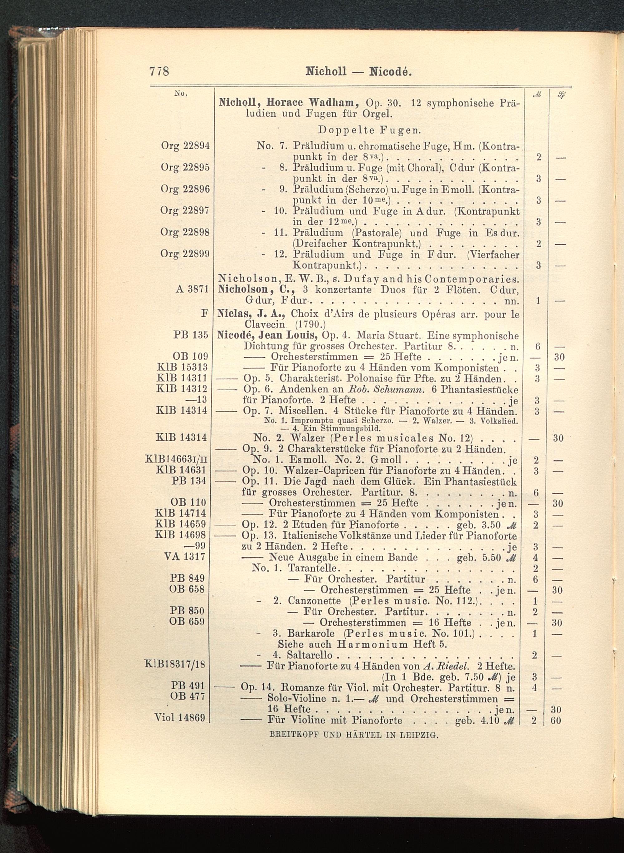 Verzeichnis des Musikalien-Verlages von Breitkopf & Härtel in Leipzig vollständig bis 1902
