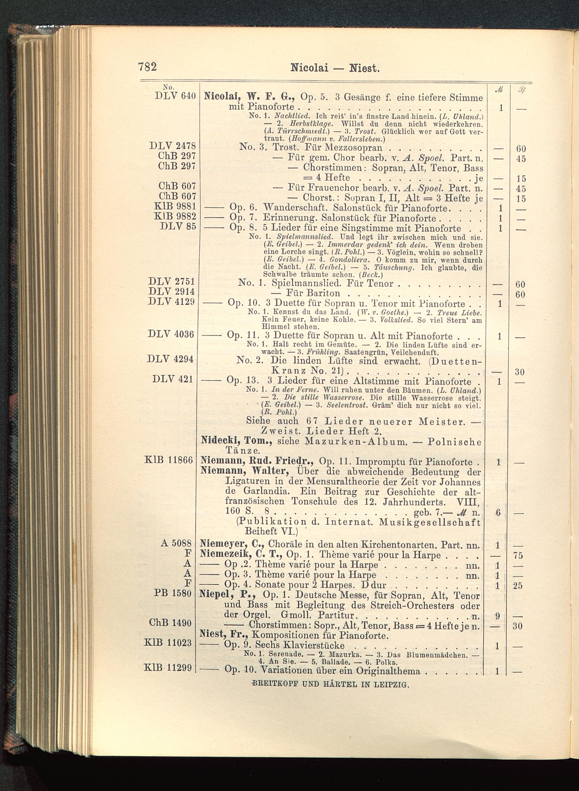 Verzeichnis des Musikalien-Verlages von Breitkopf & Härtel in Leipzig vollständig bis 1902