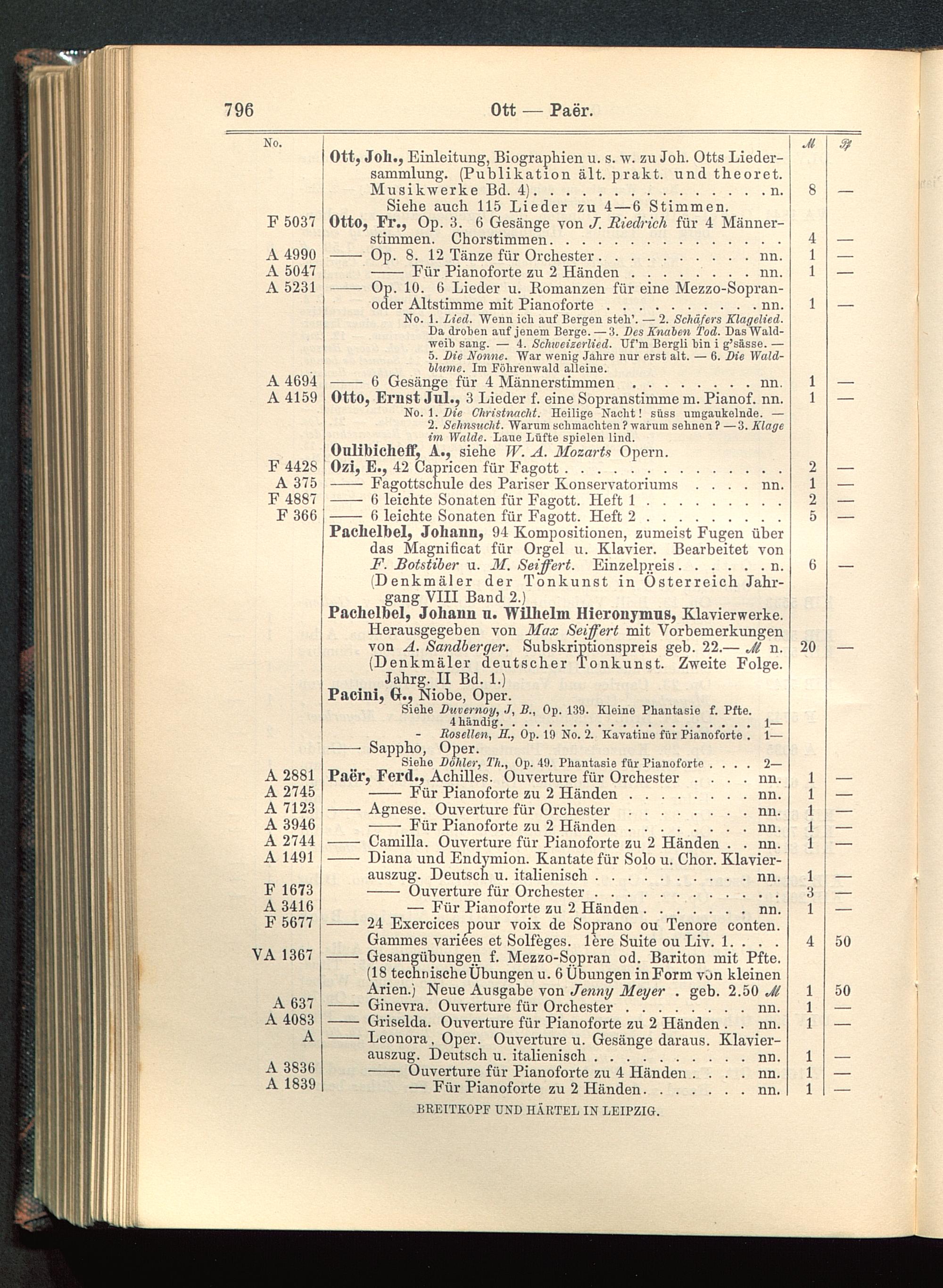 Verzeichnis des Musikalien-Verlages von Breitkopf & Härtel in Leipzig vollständig bis 1902