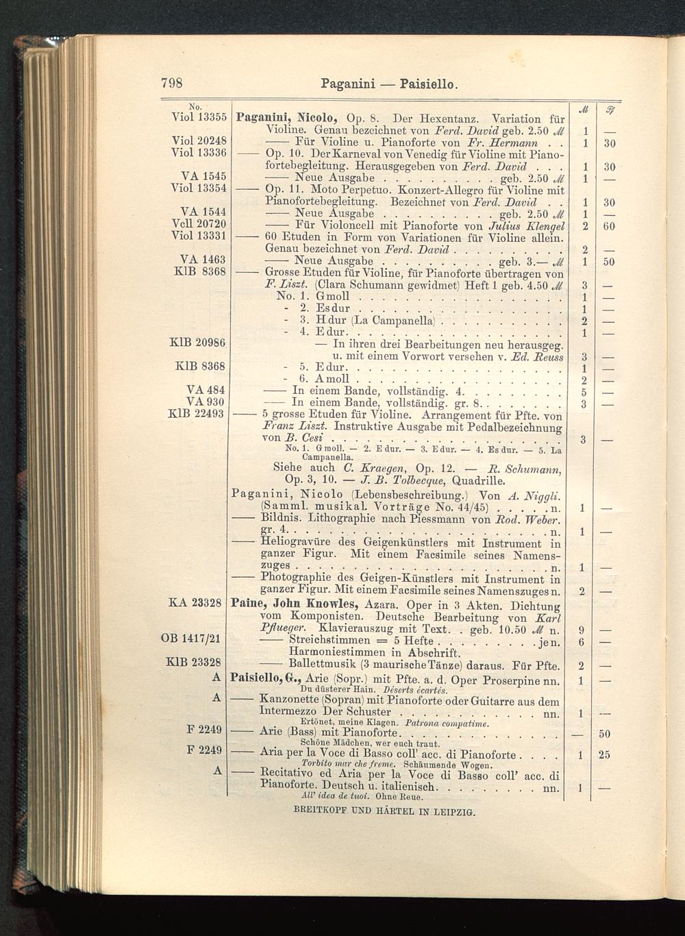 Verzeichnis des Musikalien-Verlages von Breitkopf & Härtel in Leipzig vollständig bis 1902