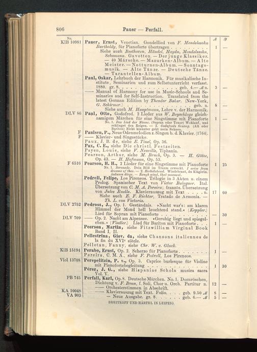 Verzeichnis des Musikalien-Verlages von Breitkopf & Härtel in Leipzig vollständig bis 1902