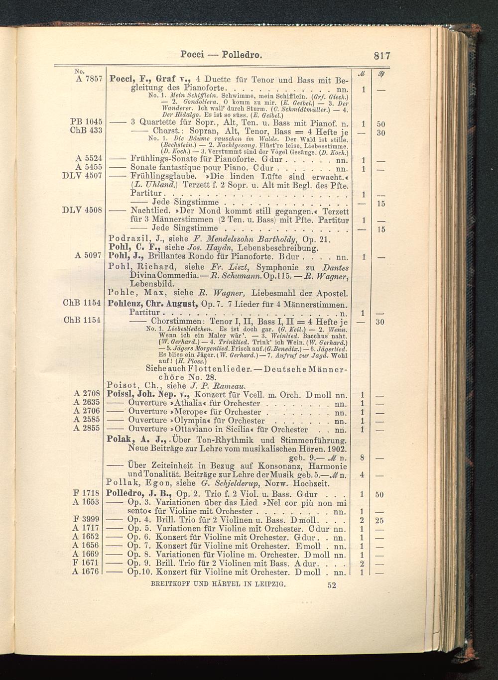 Verzeichnis des Musikalien-Verlages von Breitkopf & Härtel in Leipzig vollständig bis 1902