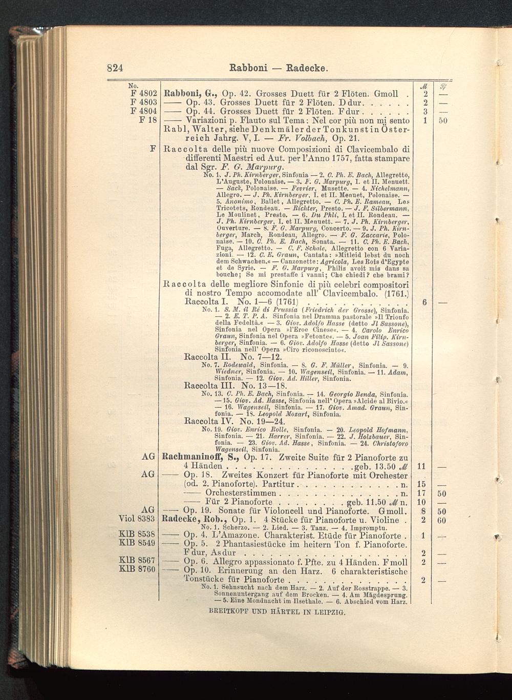 Verzeichnis des Musikalien-Verlages von Breitkopf & Härtel in Leipzig vollständig bis 1902