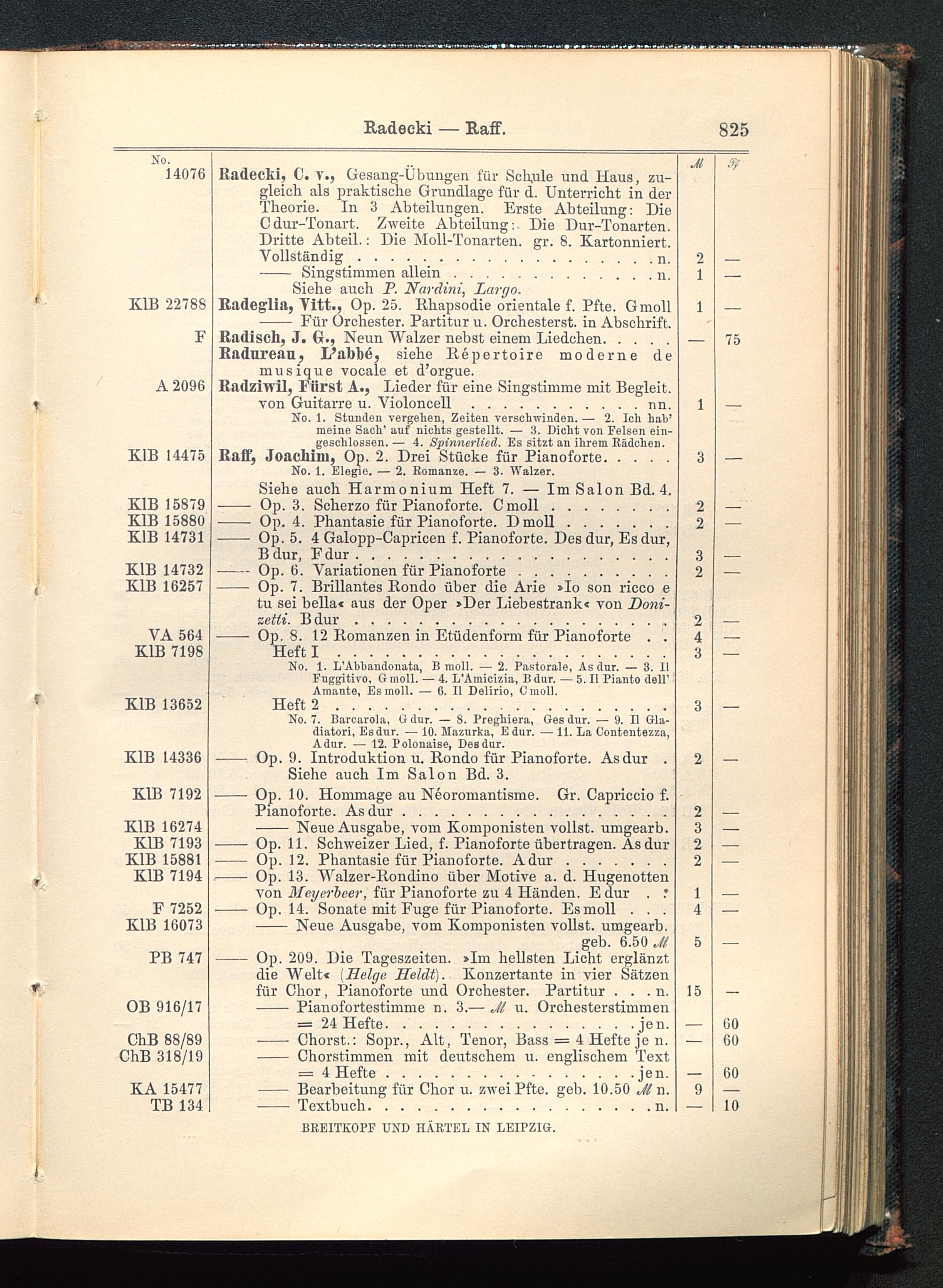 Verzeichnis des Musikalien-Verlages von Breitkopf & Härtel in Leipzig vollständig bis 1902