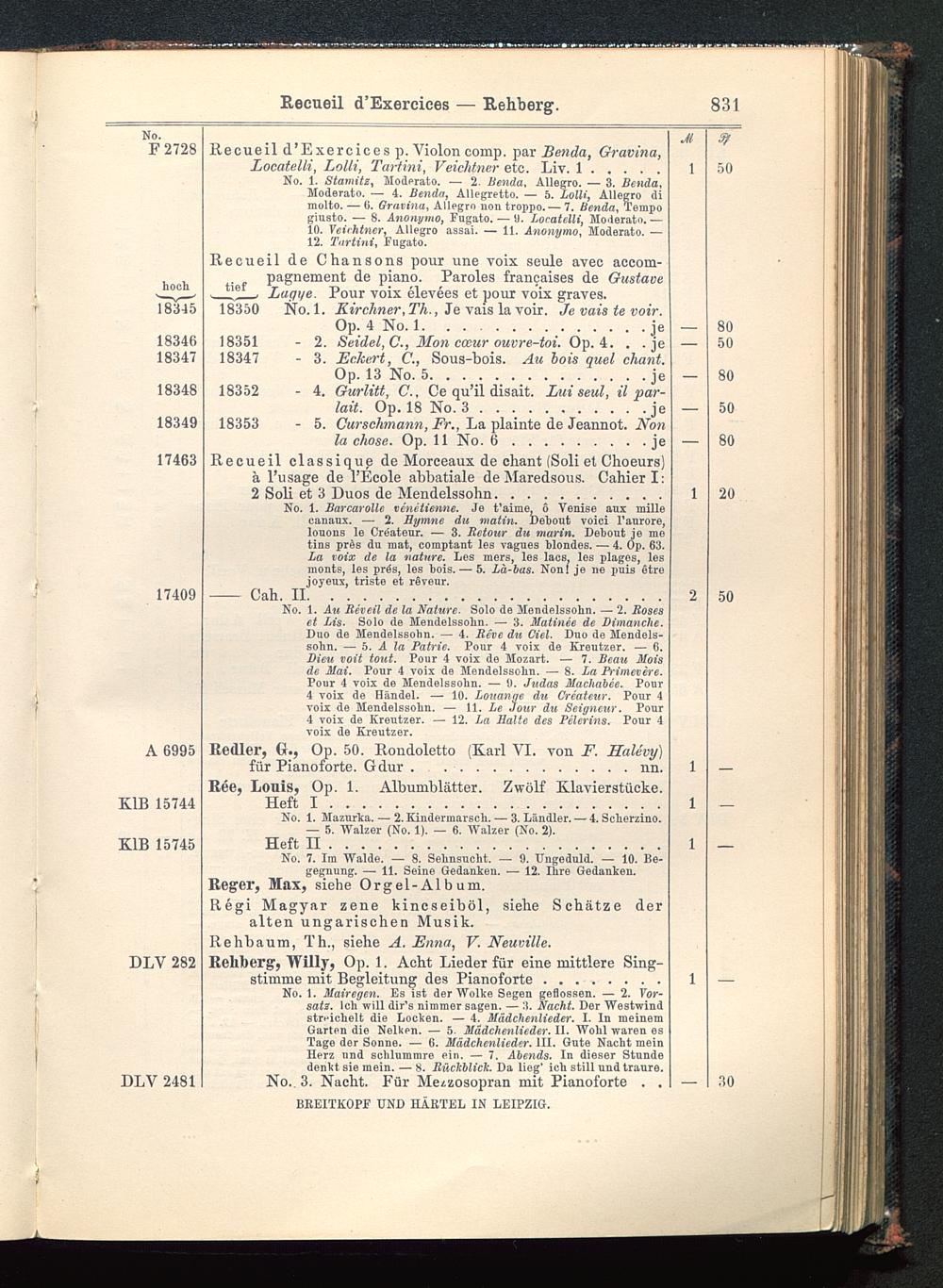 Verzeichnis des Musikalien-Verlages von Breitkopf & Härtel in Leipzig vollständig bis 1902