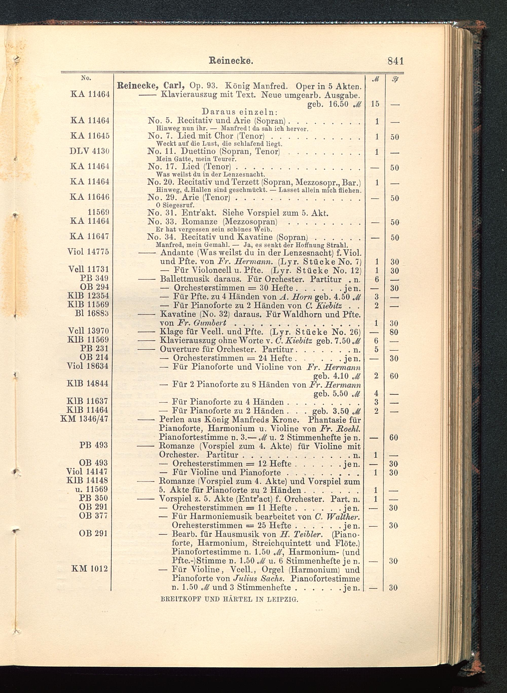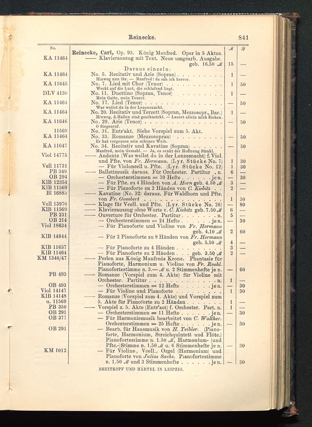Verzeichnis des Musikalien-Verlages von Breitkopf & Härtel in Leipzig vollständig bis 1902
