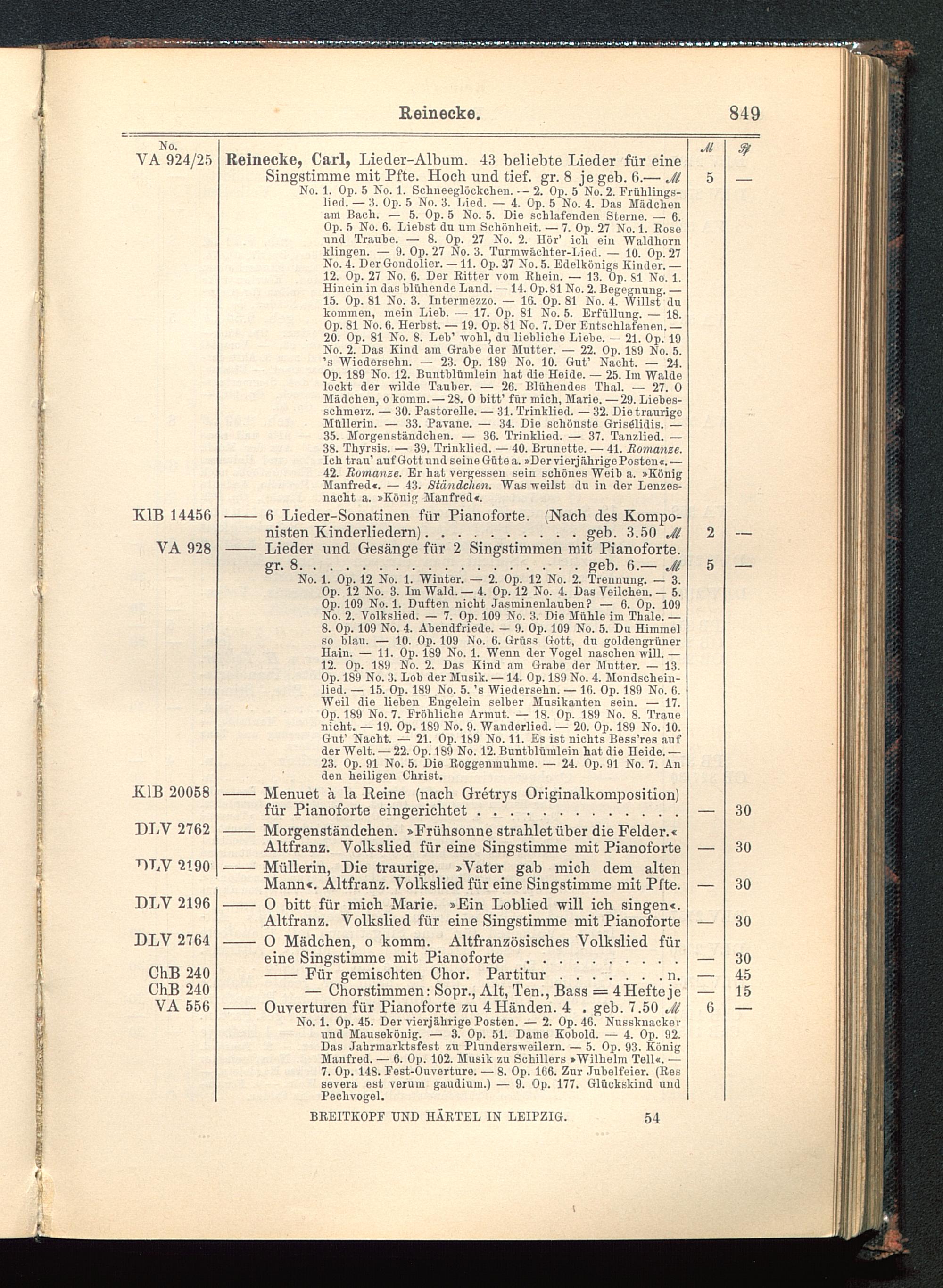 Verzeichnis des Musikalien-Verlages von Breitkopf & Härtel in Leipzig vollständig bis 1902