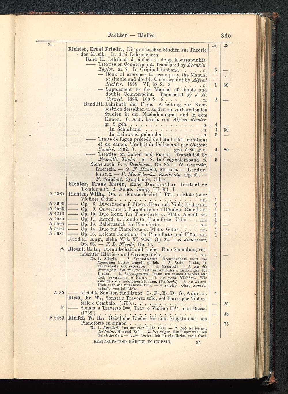Verzeichnis des Musikalien-Verlages von Breitkopf & Härtel in Leipzig vollständig bis 1902