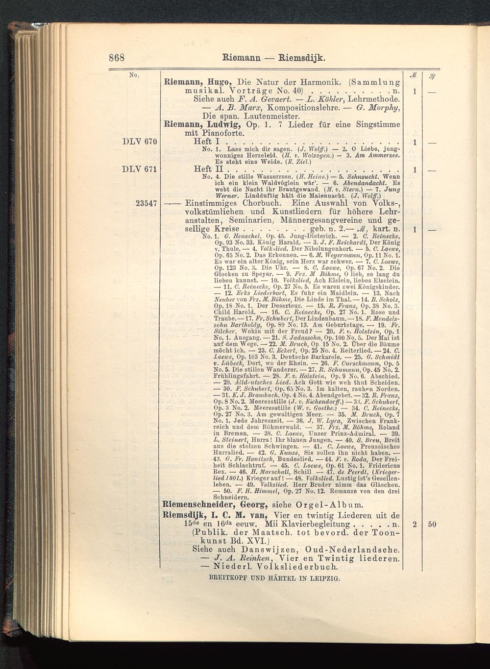 Verzeichnis des Musikalien-Verlages von Breitkopf & Härtel in Leipzig vollständig bis 1902